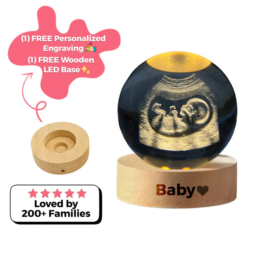 El Orbe Brillante está elaborado con grabado de alta precisión que captura cada detalle de la foto de tu bebé con una claridad impresionante, transformándola en un recuerdo único y conmovedor.